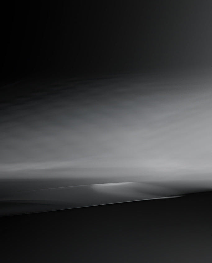 “It’s not a moving film,” Olly explains. “It’s a carefully composed series of still frames—each a frozen moment focused entirely on a single surface: polished stainless steel. It’s a minimalist exploration that strips imagery to its essence, inviting viewers to slow down and reflect.” Julia describes the surface as both mirror and canvas: “In black and white, its reflective qualities become heightened. Subtle shifts of light and shadow reveal abstract shapes with quiet intensity. Each frame feels like a breath, a stillness within the digital stream.”